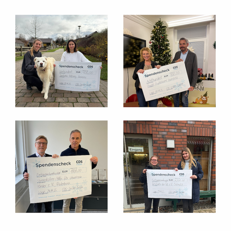 Auch in diesem Jahr spendet die CDS-Service-Gruppe wieder ein Budget von 4.200 € an wohltätige Projekte in der Region Lippe/OWL. Wie im vergangenen Jahr auch, konnte auch 2025 wieder das Team entscheiden, wie der Betrag verteilt werden soll - zur Auswahl standen dafür vier lokale Organisationen, die sich im Tierschutz oder für schwerkranke Kinder engagieren. Für Social Media wurde die Aktion auch mit der Kamera begleitet - die Videos dazu wurden immer jeweils am Adventssonntag auf Instagram und LinkedIn veröffentlicht.